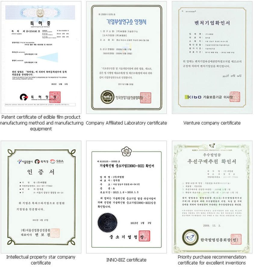 口溶膜Vinix,通過韓國KFDA認證、韓國藥物安全認證及韓國GMP認證,且獲專利保護,比它牌產品更具競爭力。